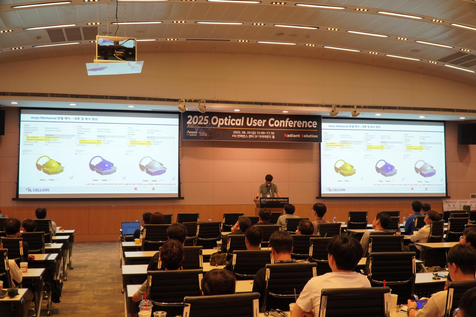 아이엘셀리온 김장배 차장은 Ansys Speos 및 Mechanical 활용 Projection Module 연성해석 검토 사례를 발표하며, 광학 기계 연성 해석을 통한 실제 모듈 설계 검증 과정을 선보였습니다.